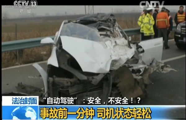 從之前的文章《據特斯拉事件談無人駕駛》中提到特斯拉首例自動駕駛事故,然而近日,CCTV13頻道的《法治在線》節目中,報道了一起今年1月份發生在京港澳高速公路上的事故,一輛特斯拉Model S追尾了??吭诼愤叺牡缆非鍜哕嚕{駛員高雅寧當場死亡。報道中提到,在事故之后的調查過程中,高雅寧的父親高巨斌發現事故中的Model S很可能Autopilot處于開啟的狀態。