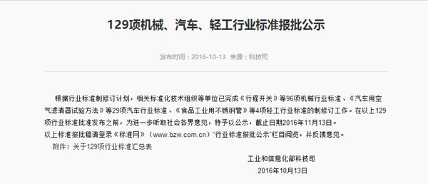 10月13日,工業(yè)和信息化部科技司對(duì)129項(xiàng)機(jī)械、汽車、輕工行業(yè)標(biāo)準(zhǔn)進(jìn)行報(bào)批公示。其中涉及到電動(dòng)汽車行業(yè)標(biāo)準(zhǔn)的有兩項(xiàng),標(biāo)準(zhǔn)名稱分別為《電動(dòng)汽車用異步驅(qū)動(dòng)電機(jī)系統(tǒng)》、《電動(dòng)汽車用永磁同步驅(qū)動(dòng)電機(jī)系統(tǒng)》。