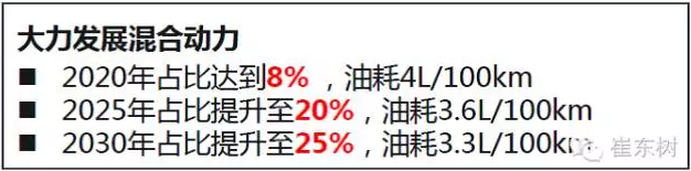首先是推動車輛輕量化、小型化,要求緊湊型及以下車輛2020年占比超過55%、2025年60%、2030年70%左右。
