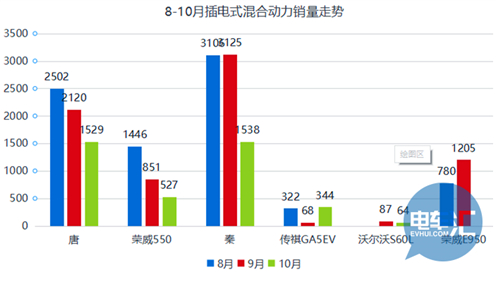 近幾月主打插電式混動車型銷量慘淡,比亞迪唐、榮威e550持續下降明顯,比亞迪秦10月銷量較上月折半,由3125臺降低到1538臺,降幅20.8%。