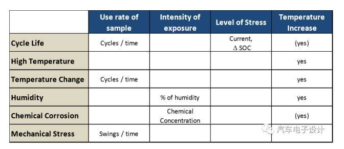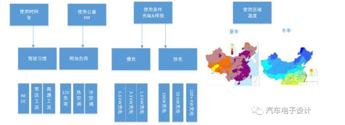 電動汽車電池系統(tǒng)方面的耐久性,換個(gè)說法就是耐久性方面的考慮。原則上,就是需要在考慮使用時(shí)間、使用公里數(shù)、使用條件和使用環(huán)境等條件下,輸入給電池系統(tǒng)一個(gè)等效的負(fù)荷環(huán)境。